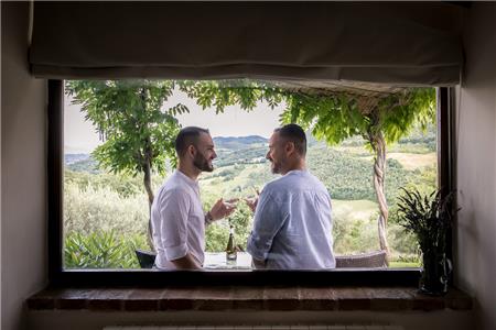 Frutto di un recupero incredibile la chiesa e la villa adiacente, sono incorniciate da vigneti a perdita d'occhio dove nascono alcuni dei vini più buoni della regione, oltre all'olio extravergine di oliva ed il tartufo.